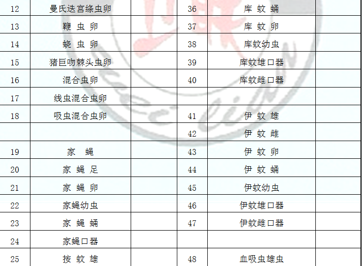 12 曼氏迭宫绦虫卵 36 库 蚊 蛹