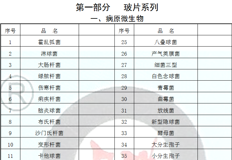 1 蝇针刺标本(麻蝇、金蝇、绿蝇)   26 姜片虫浸制标本